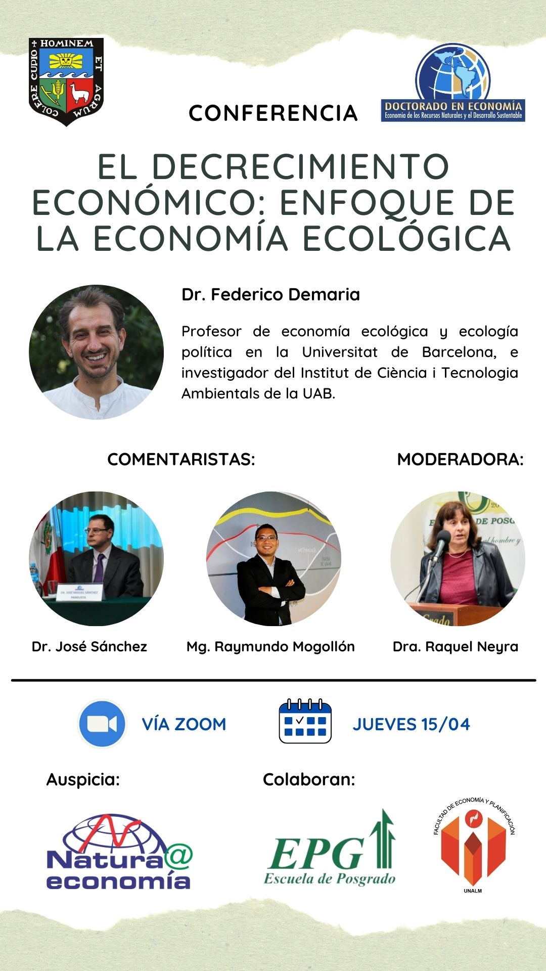 CONFERENCIA EL DECRECIMIENTO ECONÓMICO: ENFOQUE DE LA ECONOMÍA ECOLÓGICA