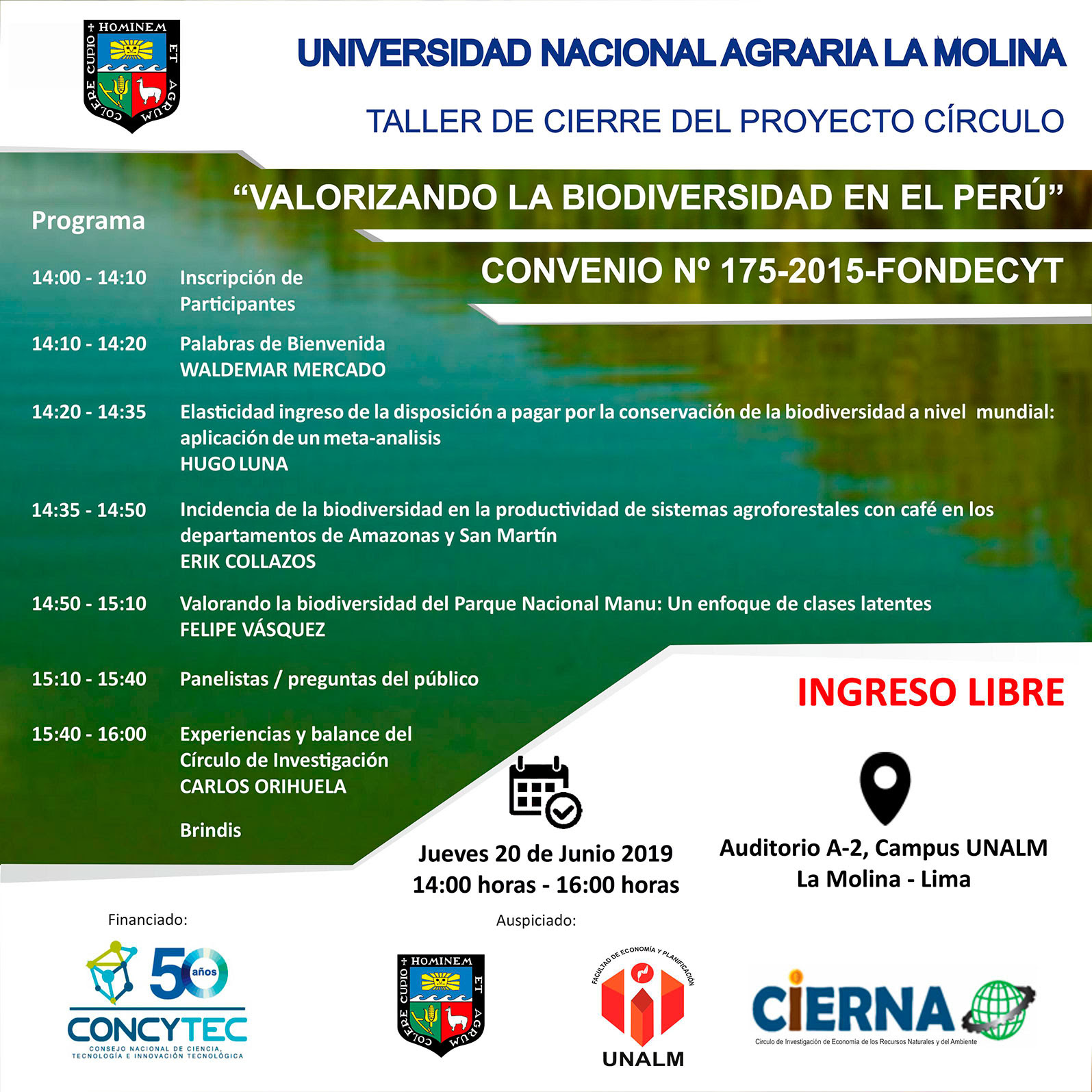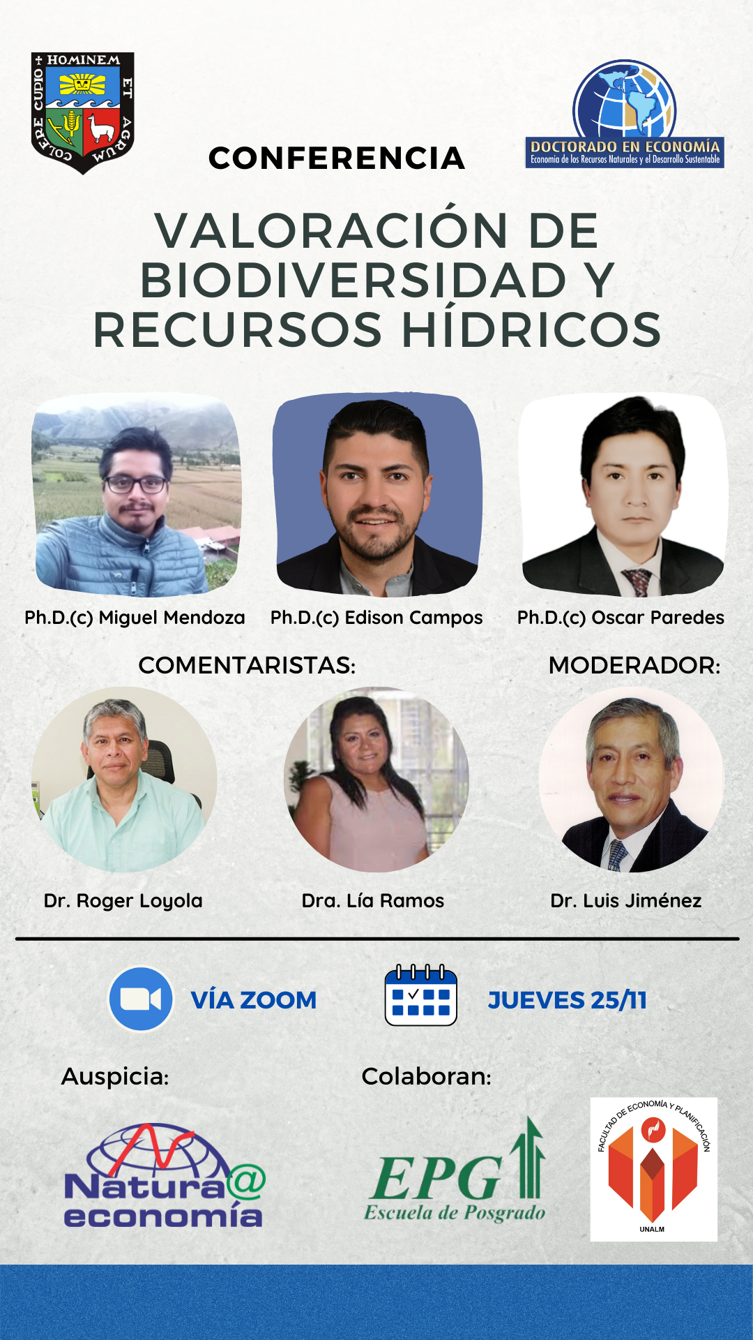 Fecha: 12 de octubre Modalidad: Presencial Lugar: Auditorio de la EPG UNALM
